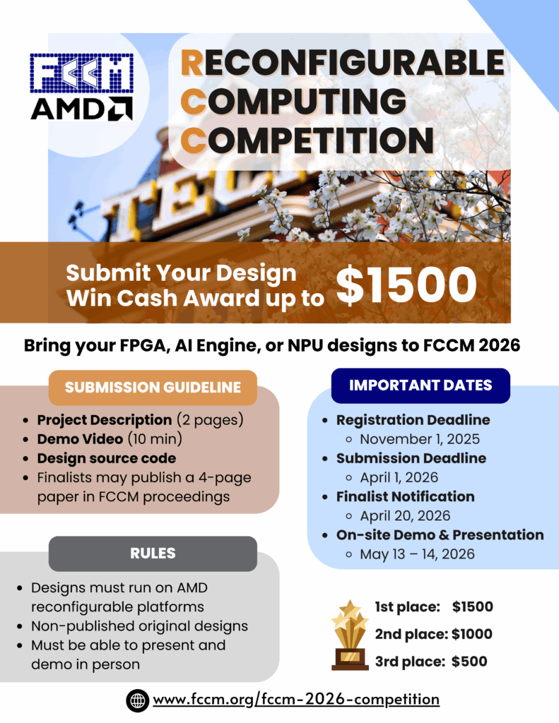 [New!] This year, we have launched a Reconfigurable Computing Challenge (RCC 2026)! Check out the competition page for more details! Registration form is available here.